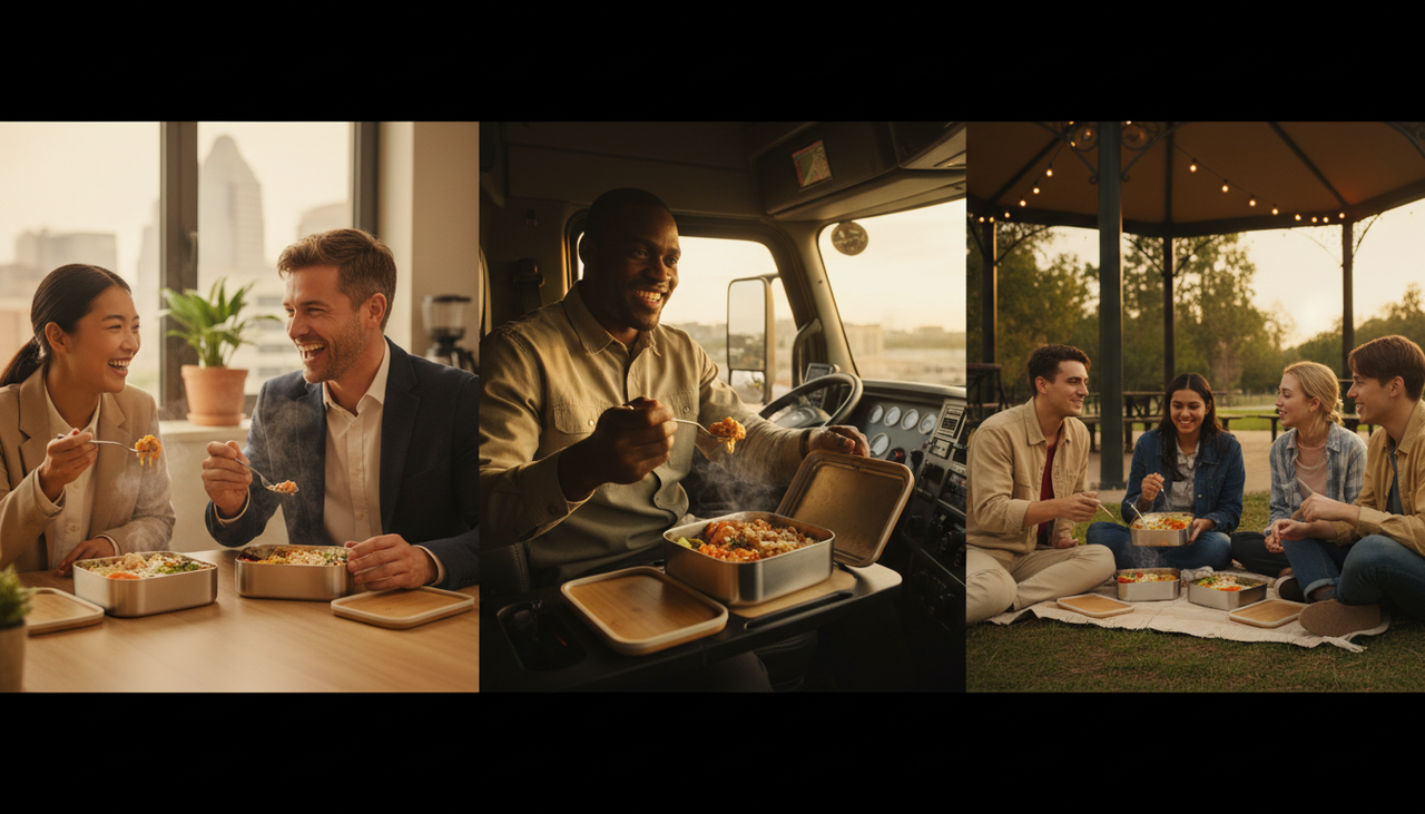 This lunch box changed my work life completely. Hot, homemade meals every single day—it's like having my kitchen with me wherever I go!